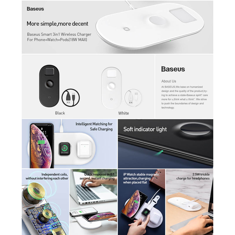 Baseus Smart 3 in 1 Wireless Charger (18W)