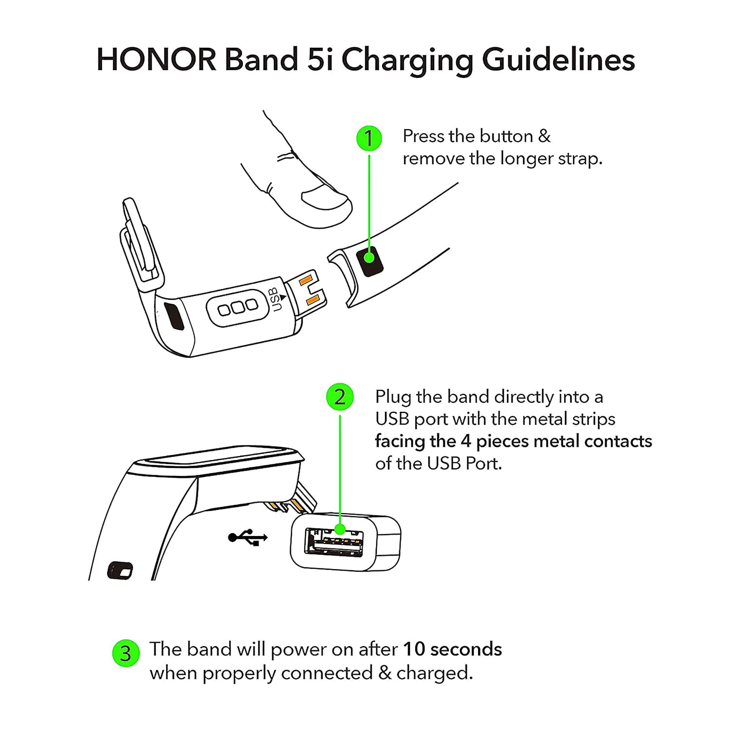 Charging is an interesting element - you don't need a separate device for this. The strap hides a USB connector that will allow you to charge the Honor Band 5i from a power bank, laptop or other device. The battery of the fitness bracelet can work in standby mode for a whole week without recharging (depending on the conditions of use).