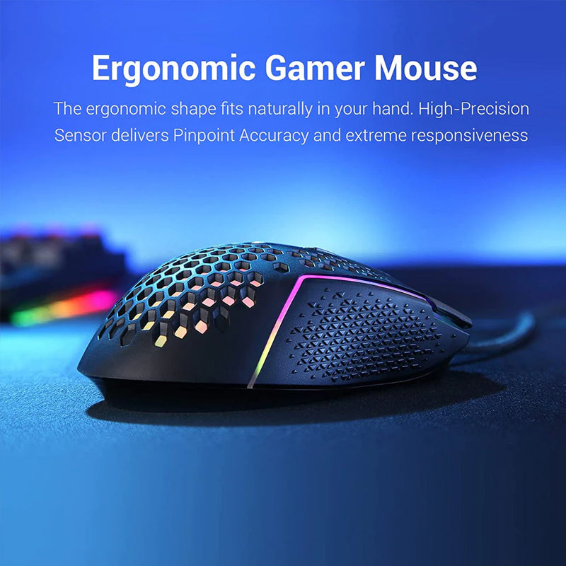 Experience ultimate comfort and improved performance with the M987-K's ultra-lightweight honeycomb shell construction. This innovative design not only reduces weight but also enhances airflow, keeping your hand cool and comfortable even during the most intense gaming sessions.